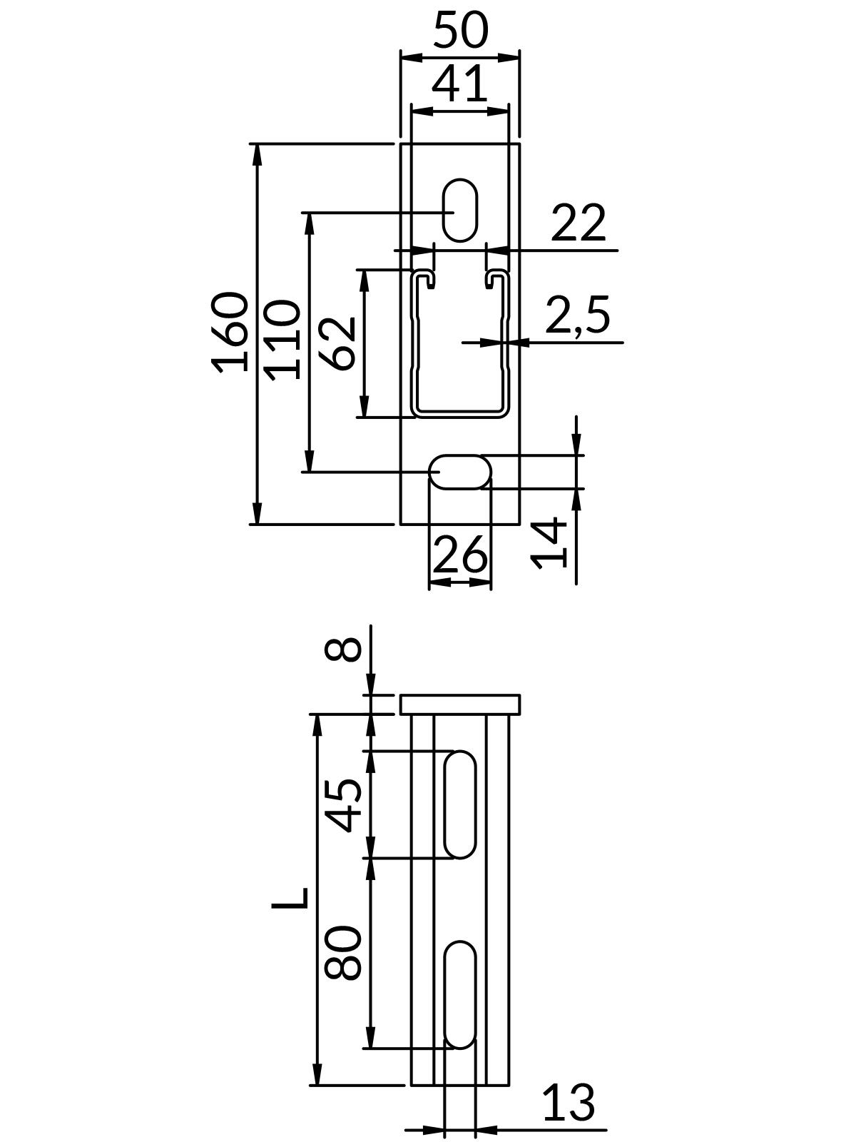 | Profil montażowy ze stopką TYP MH2,5 L=800mm (41x62x2,5) (1szt./opak) (- MPP -) |